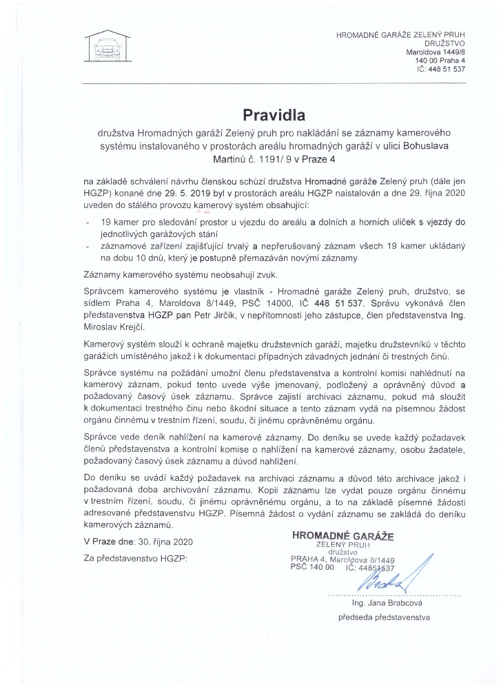 Členové družstva jako uživatelé garáží jsou podle Stanov povinni nahlásit družstvu své kontaktní údaje a jejich změny. Změnu kontaktní údajů je nutné hlásit na info@hgzp.cz a správci evidence, tj. SBD Nový domov – spojení naleznete v Kontaktech (evidence členů)).